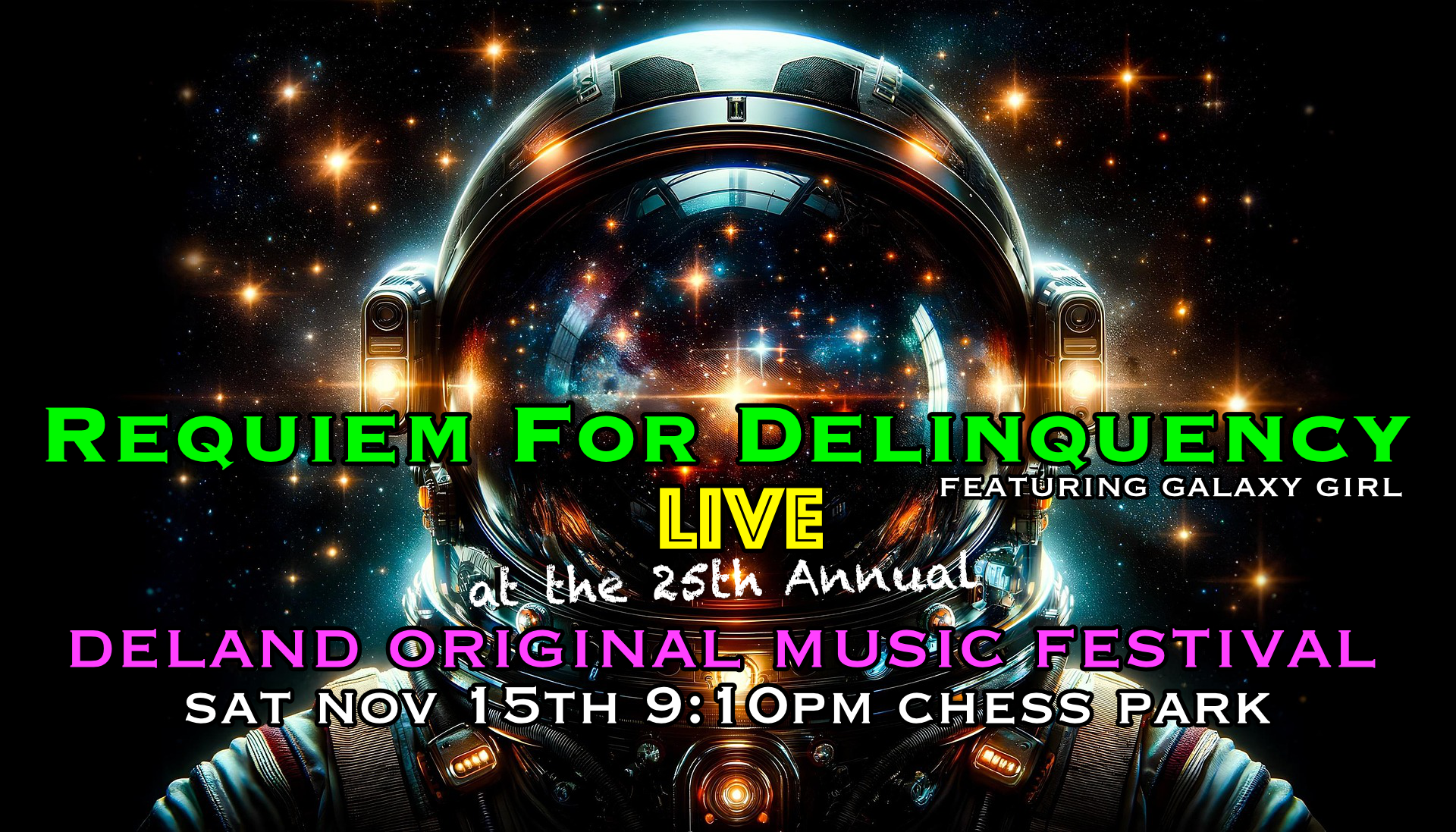 Requiem For Delinquency performing at the 2025 Deland Original Music and Art Festival Saturday night 11.15.2025 Chess Park Main Stage 9:00pm.